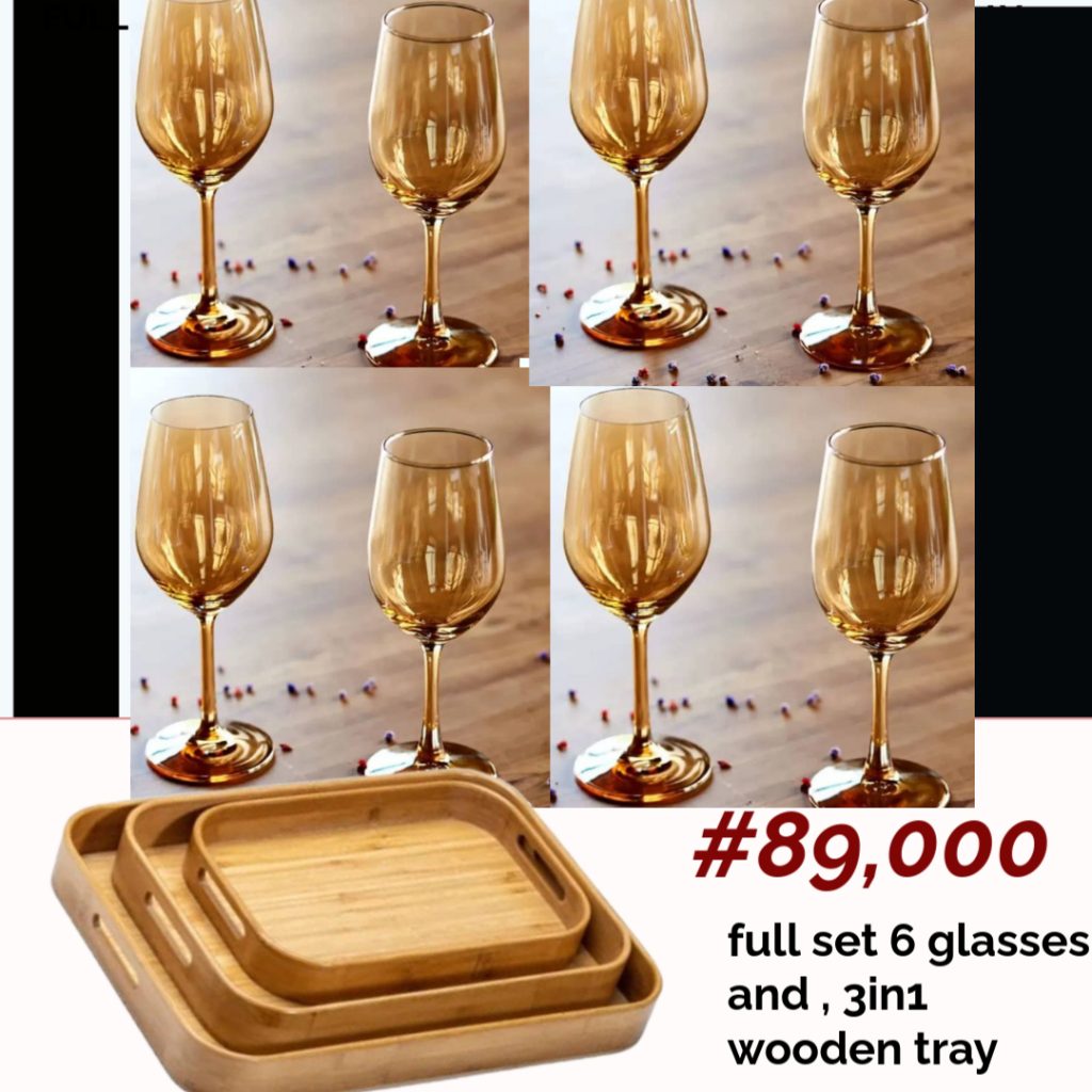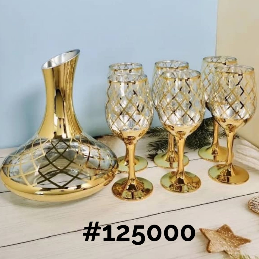 Full set: 6 Wine glasses, jar + 3 in 1 Tray